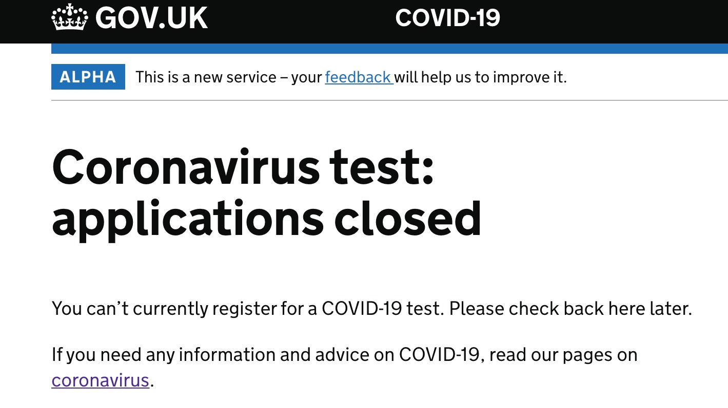 Uk Government S Coronavirus Testing Website Closes Applications On Day It Is Launched Euronews