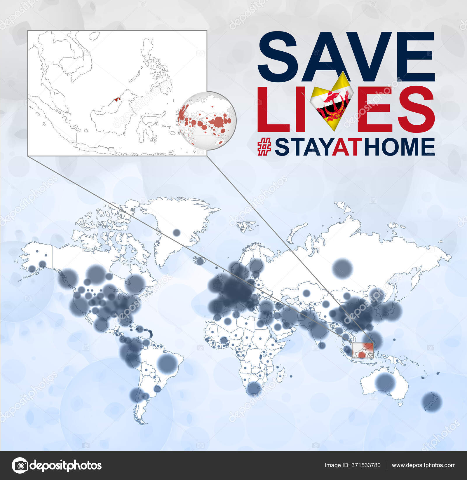 Peta Dunia Dengan Kasus Coronavirus Berfokus Pada Brunei Penyakit Covid Stok Vektor C Boldg 371533780